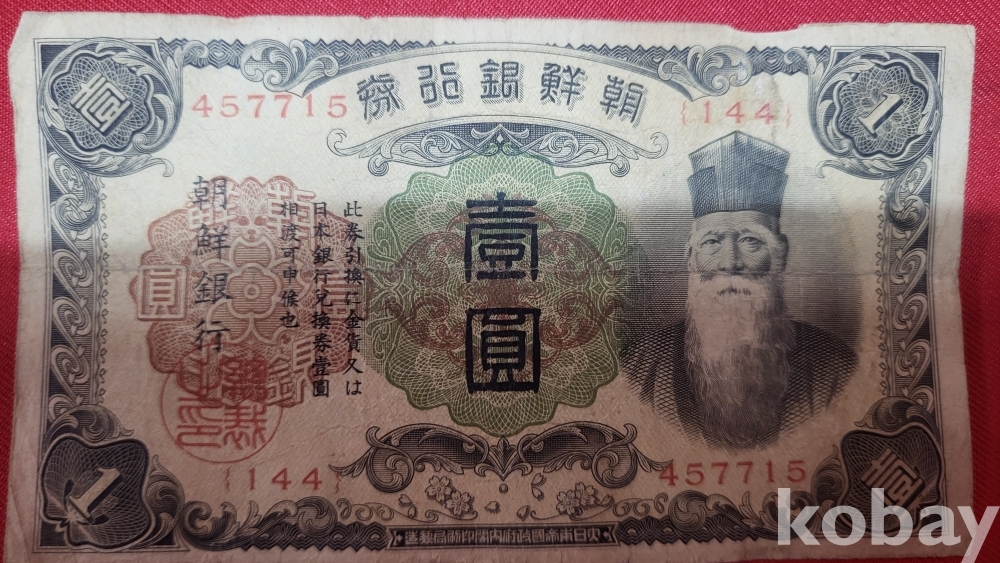 조선은행의 일원 지폐는 일제강점기 조선에서 유통되던 공식 화폐로, 일본 제국 통화 시스템에 편입된 화폐입니다.