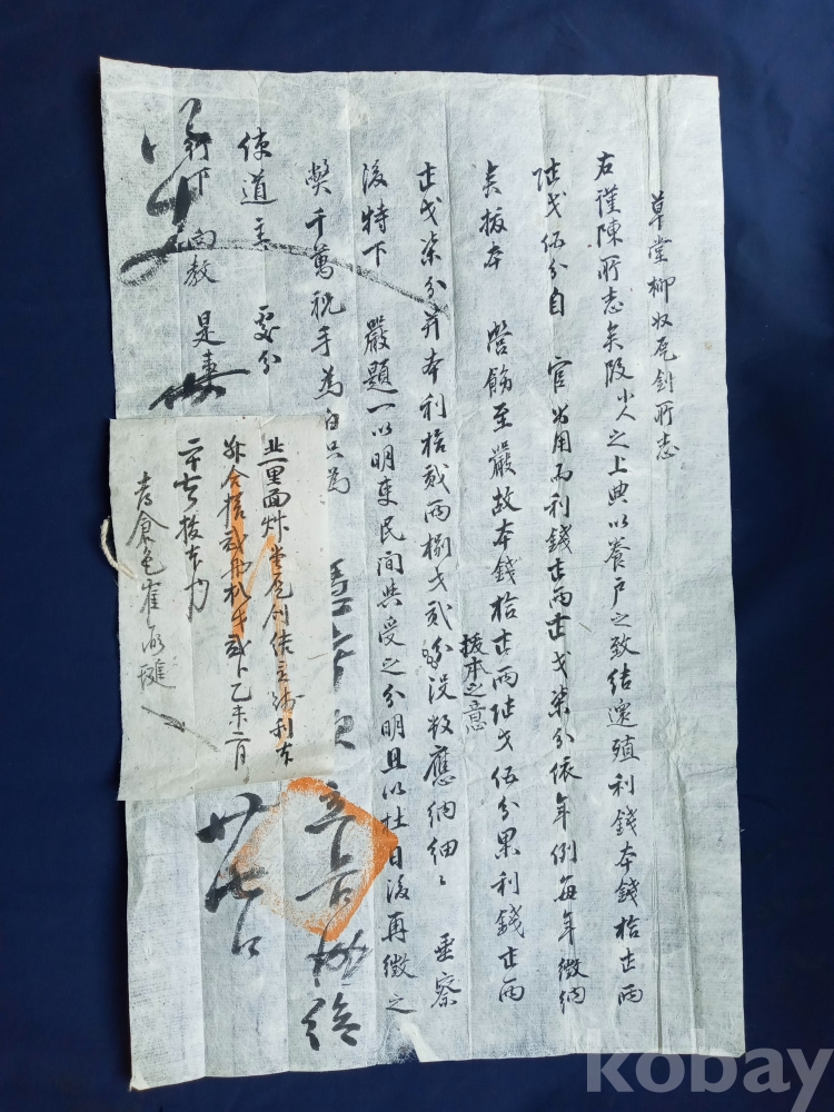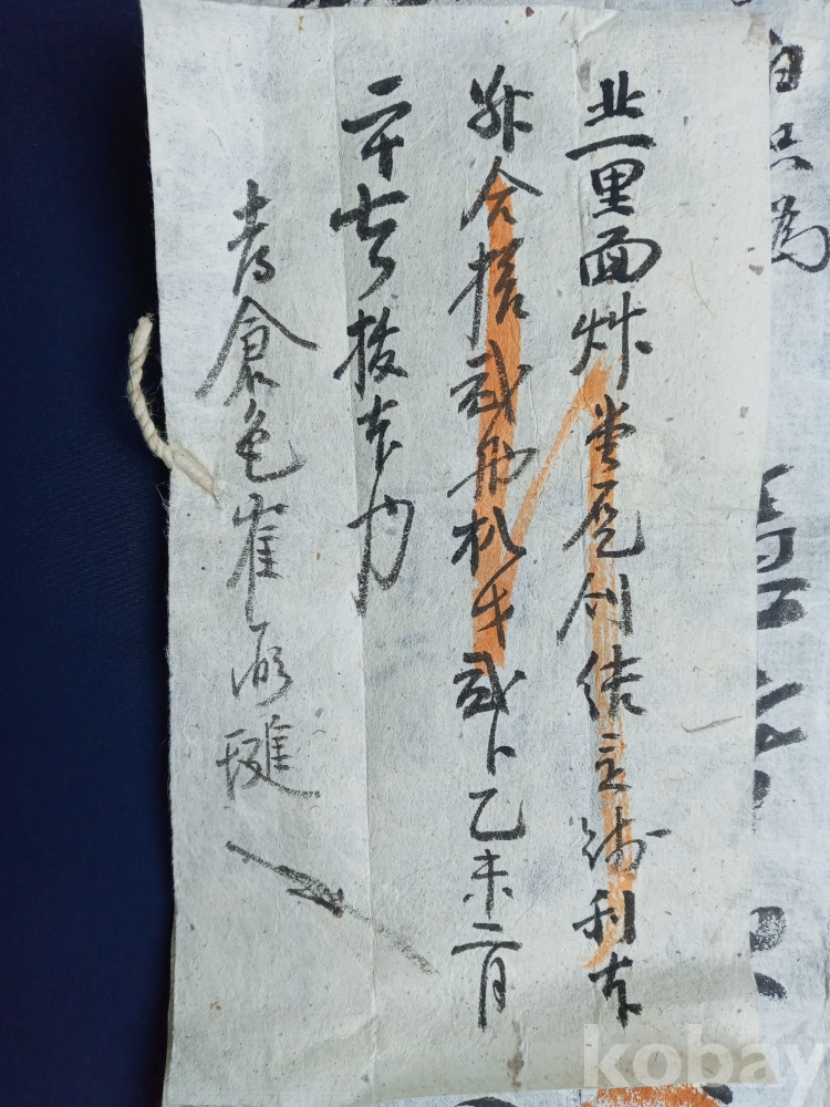 작은 쪽문서가 실로 께매어져 있는 2장의 문서입니다.