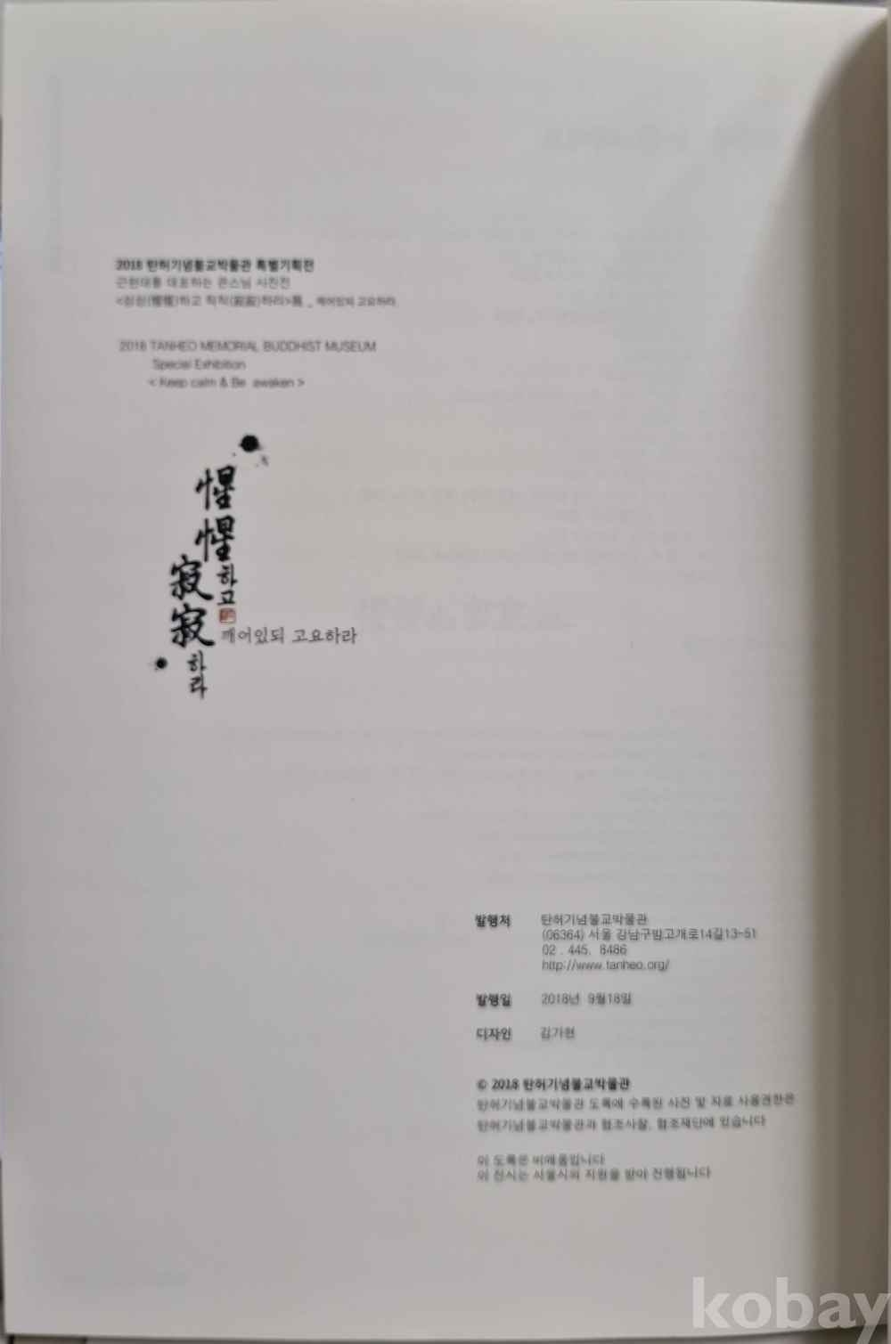 [성성하고 적적하라-깨어있되 고요하라] 2018년 단편선집 1 - 한국현대문학전집 18탄허기념불교박물관 특별기회전-근현대를 대표하는 큰스님 사진전, 발행처 탄허기념불교박물관, 2018년 9월 발행, 129쪽,