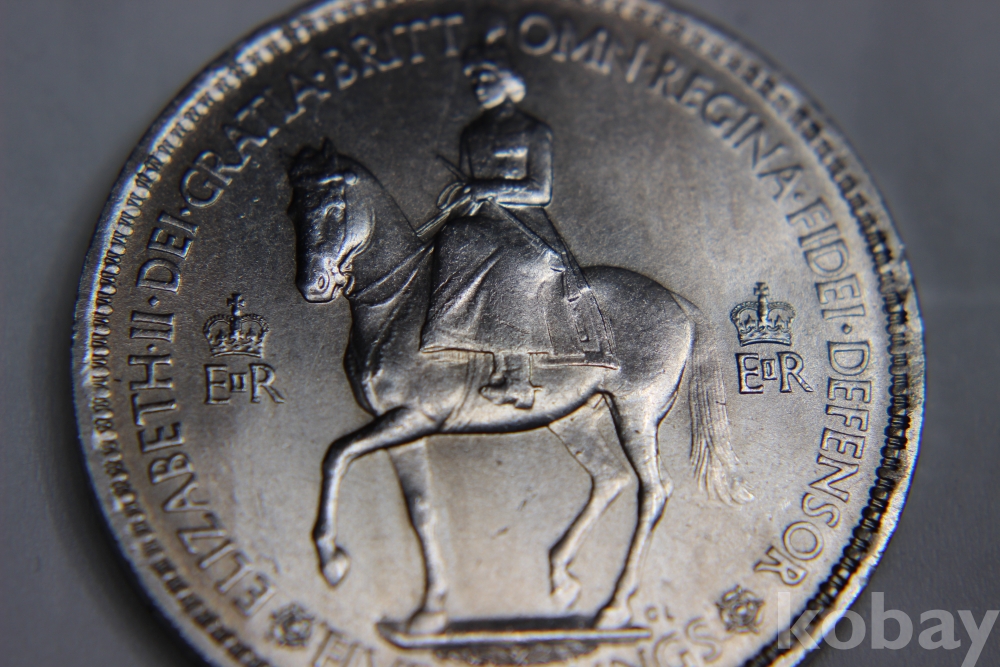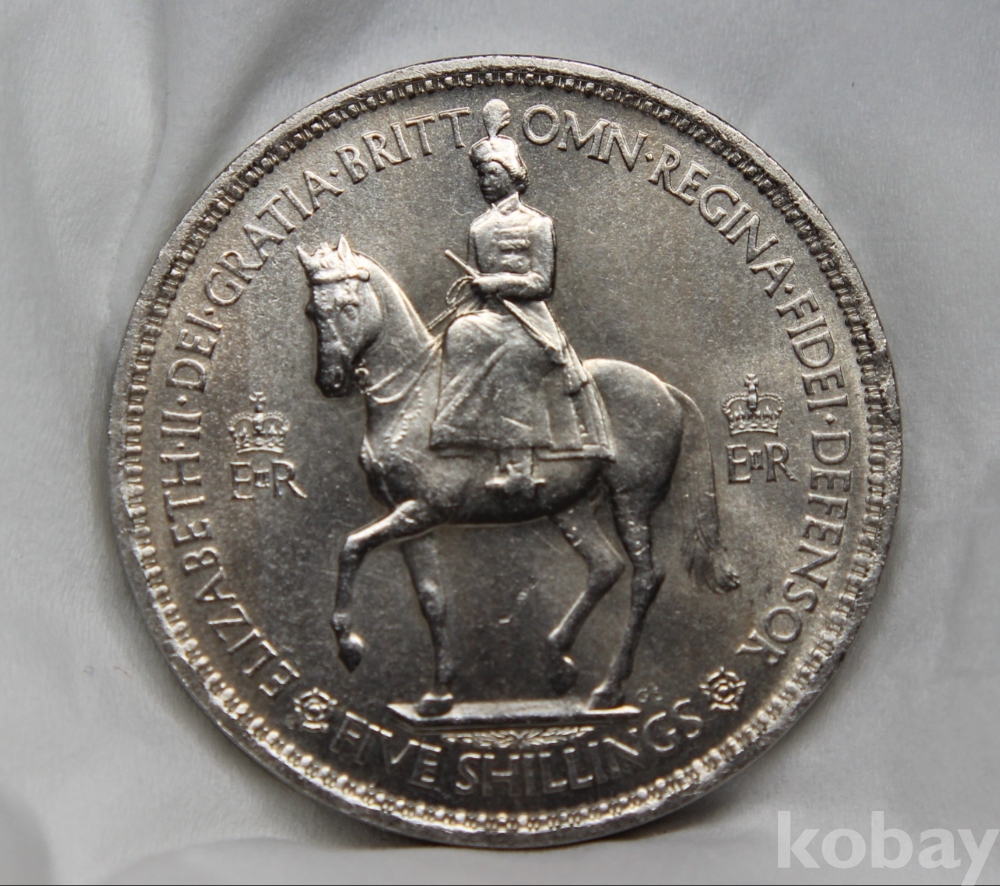 영국 5실링 1953년 엘리자베스 2세 馬上 대관식(Coronation) 기념주화 UNC