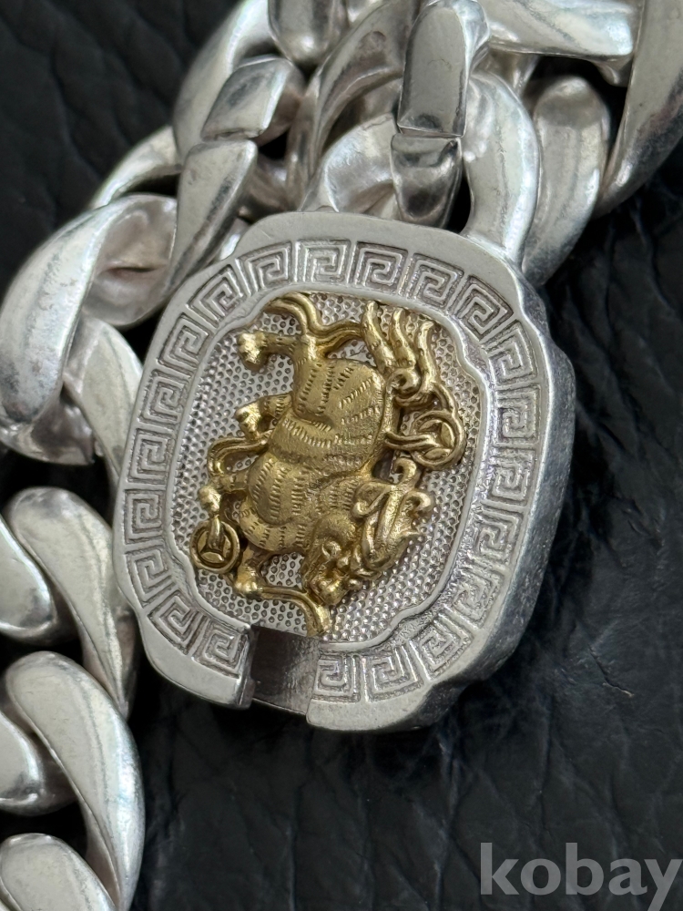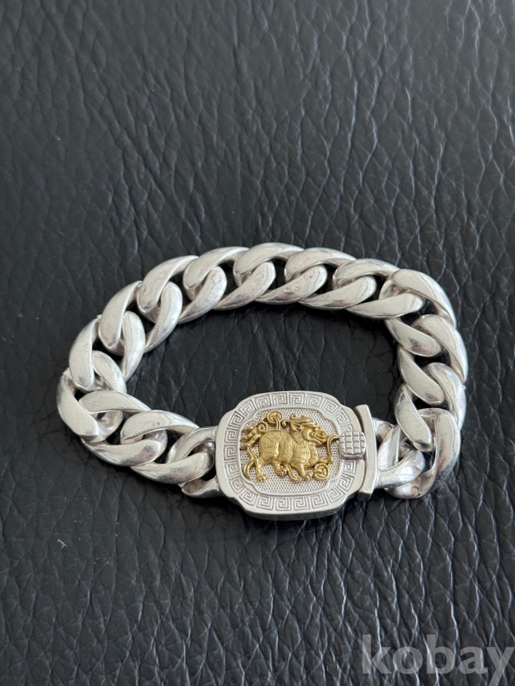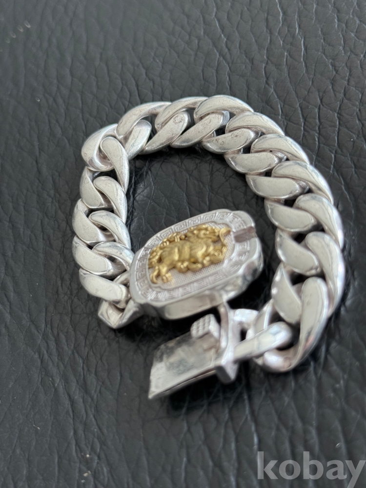 은색상에 중간 호랑이과 동물.금장색으로 포인트된 팔지이니다 진위여부 미감정 입니다
