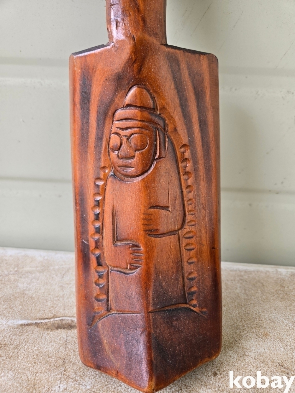 하루방이 음각으로 표현된 나무 방망이 입니다.