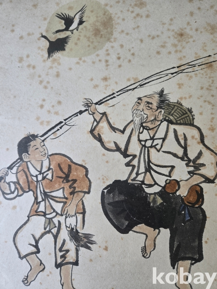 낚시 후 즐거운 모습으로 돌아오는 모습을 재밌게 표현한 그림 액자 입니다.