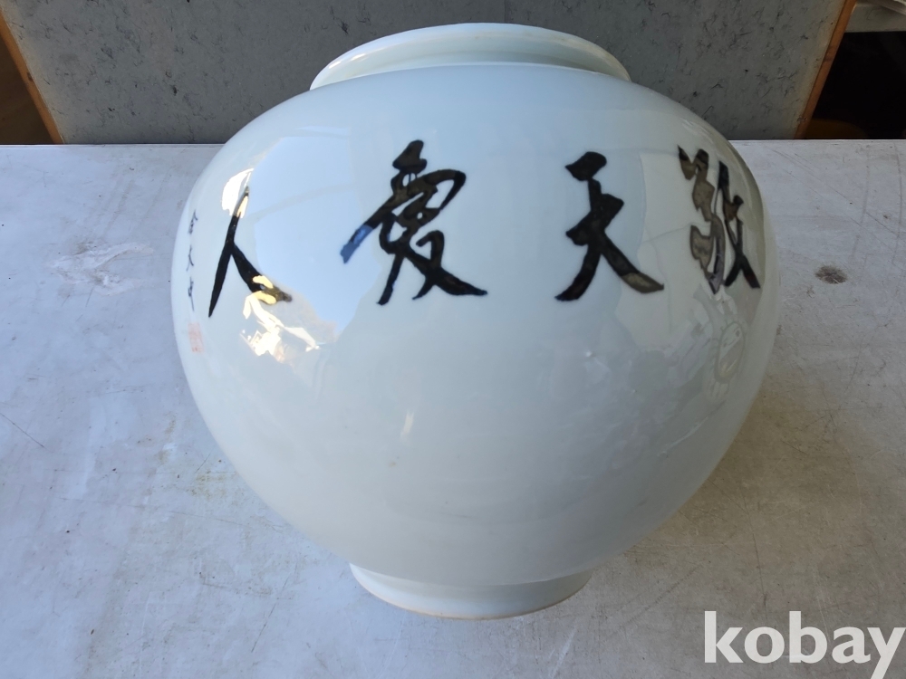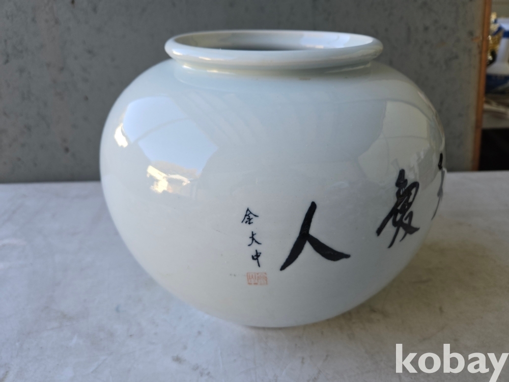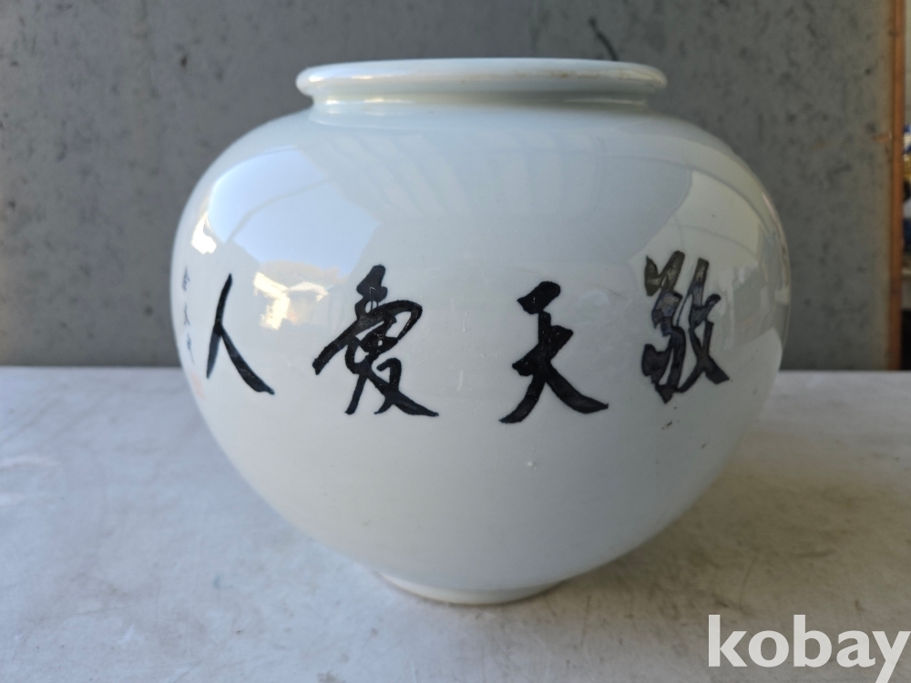 경천애인 김대중 전 대통령의 글씨가 있는 달 도자기 입니다.