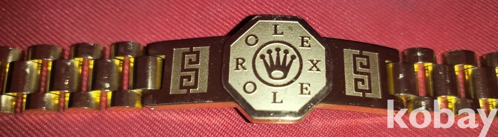 로렉스(ROLEX OLE) 마크가 새겨진 황색 고급형 남,녀 공용 미사용 팔지입니다,