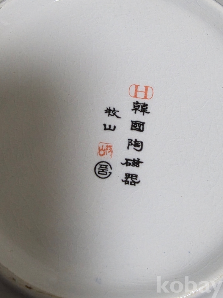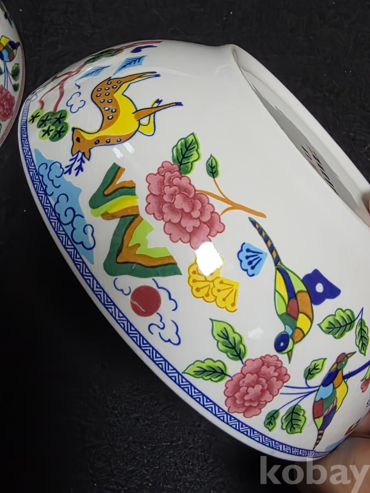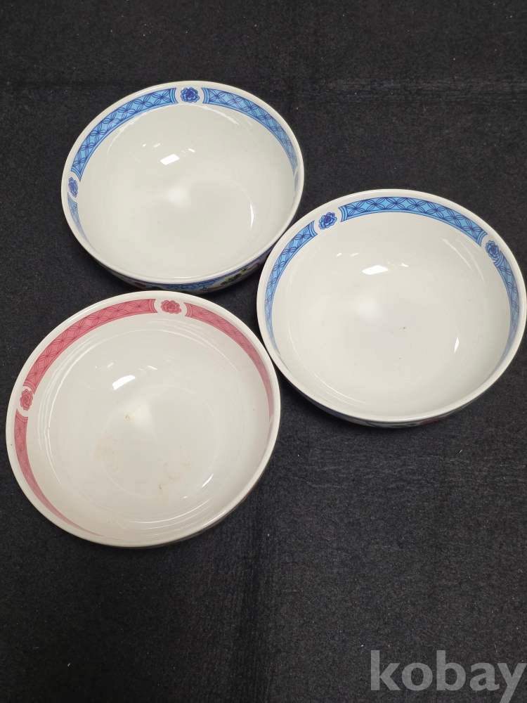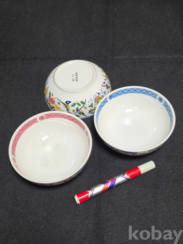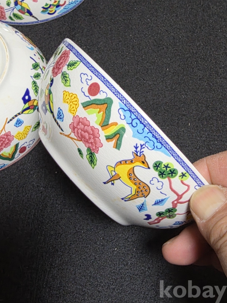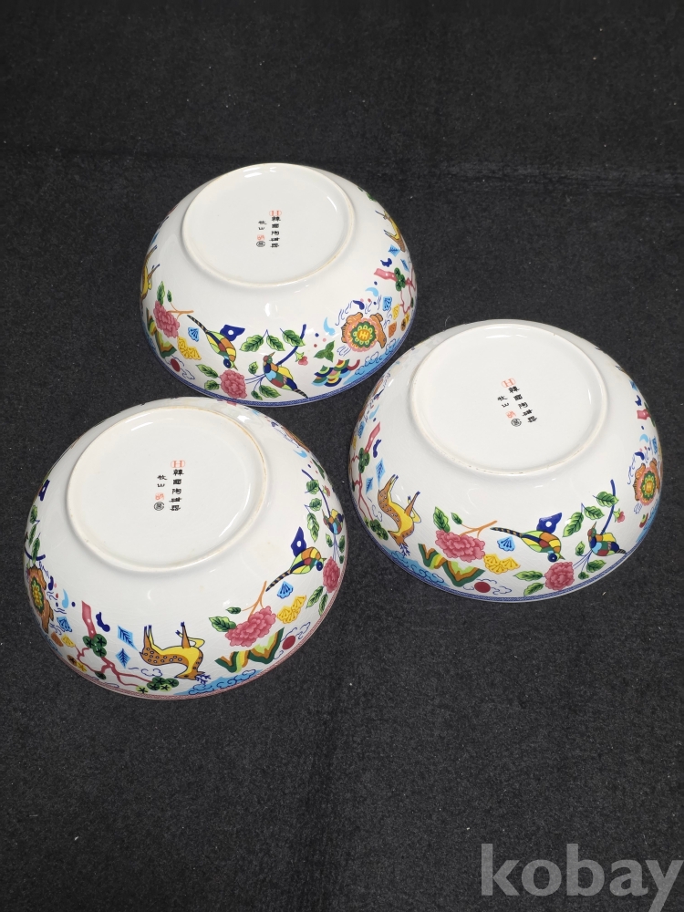 (((근현대사자료/도자기식기))) 오래전 韓國陶磁器 십장생그림 도자기대접 2종 3개