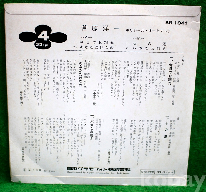 (일본제작 7인치음반) 菅原洋一 - 今日でお別れ / 心の港 ...
