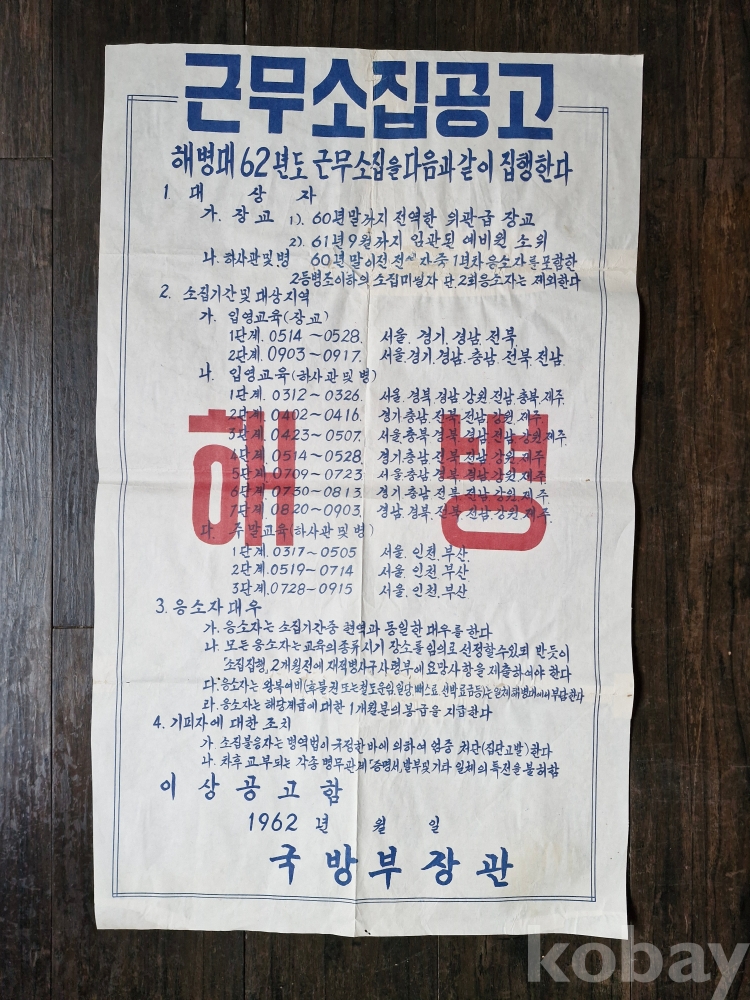 1960년대초 박정희의 등장과함께 군의 시대가 시작되며 부족한 해병대 인력을 보충하는 군관련 자료이지요