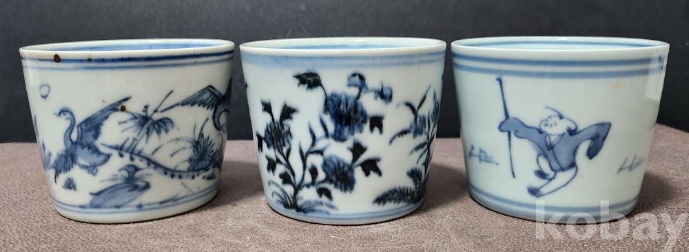 백자청화찻잔 < 노안도 蘆雁圖 > < 동자도 童子圖 > <화훼도 花卉圖 > (3점 세트 작품)