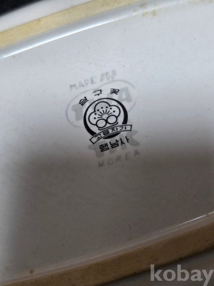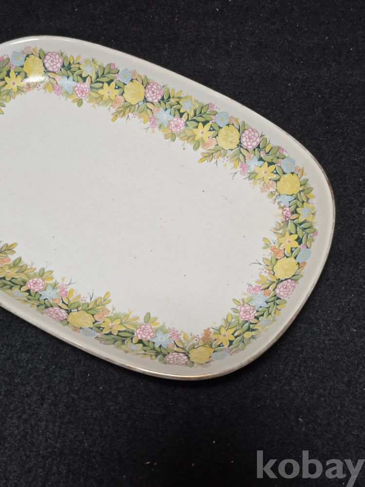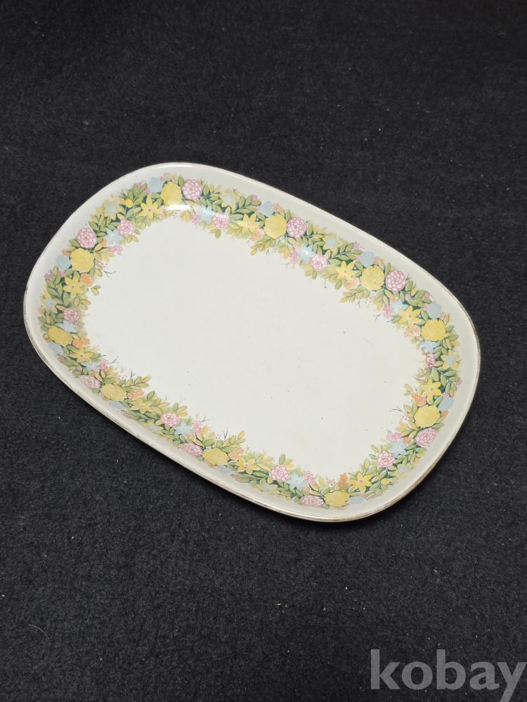 (((빈티지접시))) 오래전 살구꽃 행남사 들꽃리스 도자기 빈티지접시 (길이 19 cm)