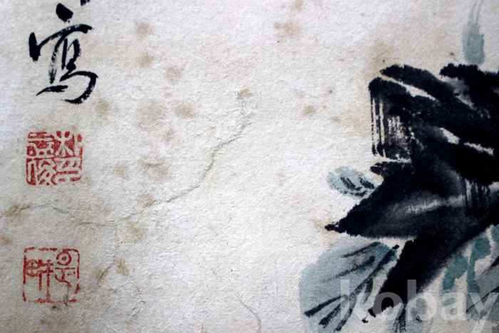 상태 : 표구지 지워질 연한 점모양의 얼룩이 여러 곳 보이나 양호하고 좋음