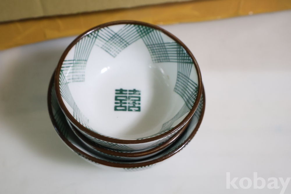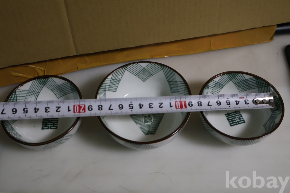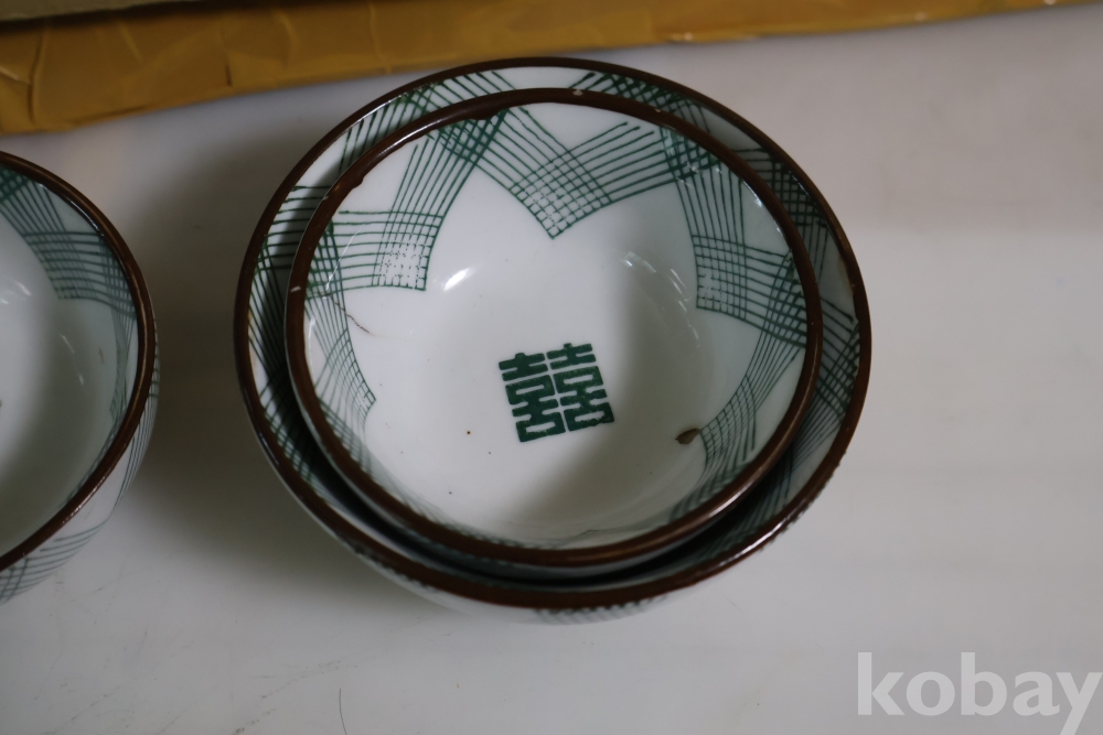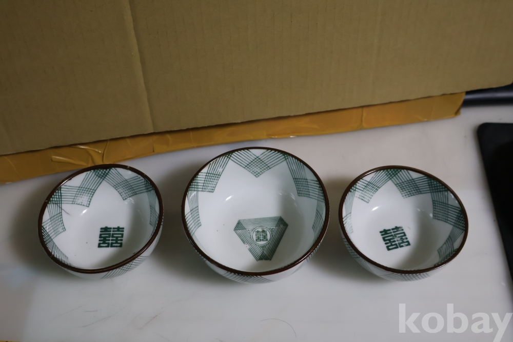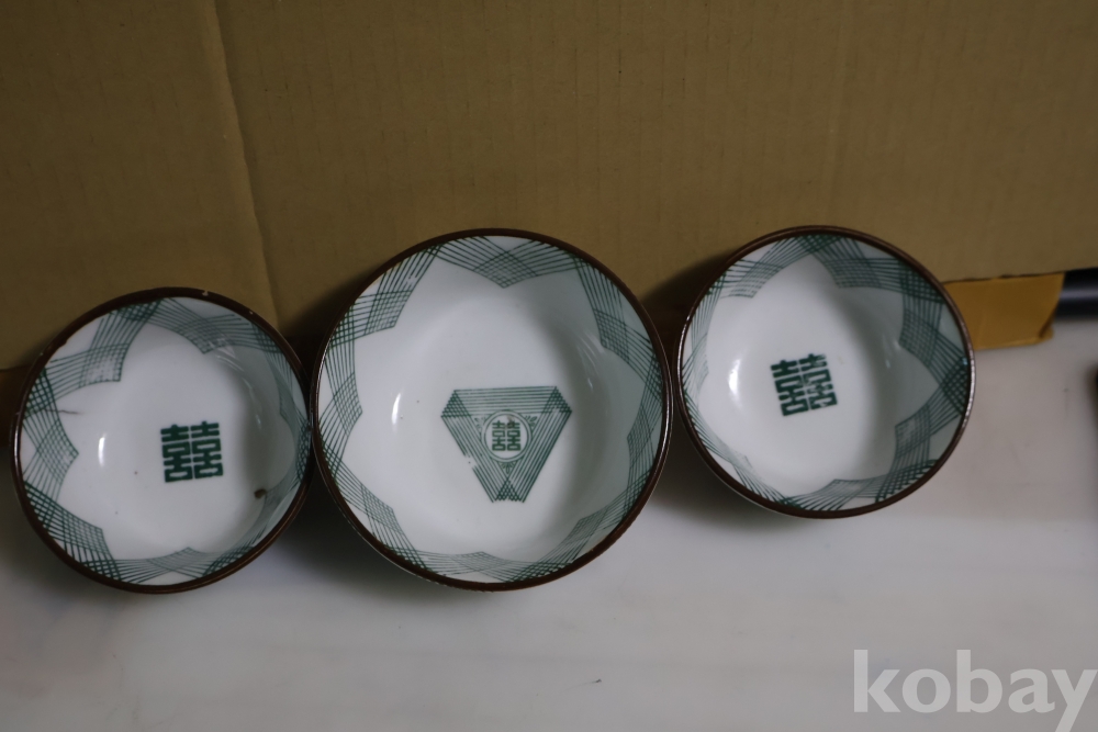 1920 30 대 쌍희 도자기 3 세트 임니다 앙증맞은 사이즈 특이한 디자인 색감을 가진 명품 임니다 묵직함니다 소성 당시 생긴 유가 한곳에 보임니다