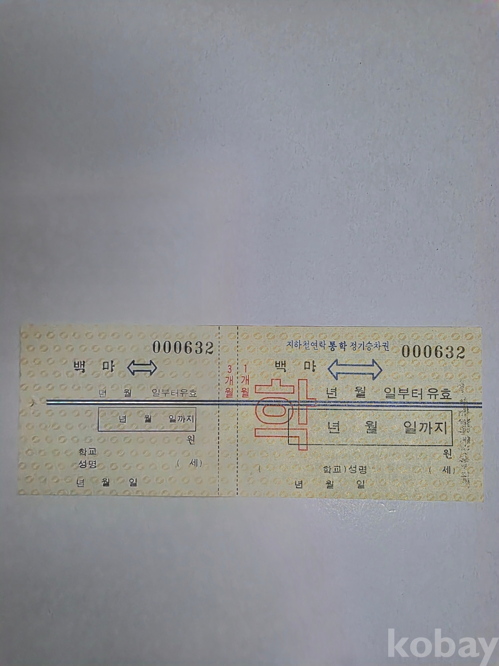 옛날 지하철 종이형 정기 승차권입니다