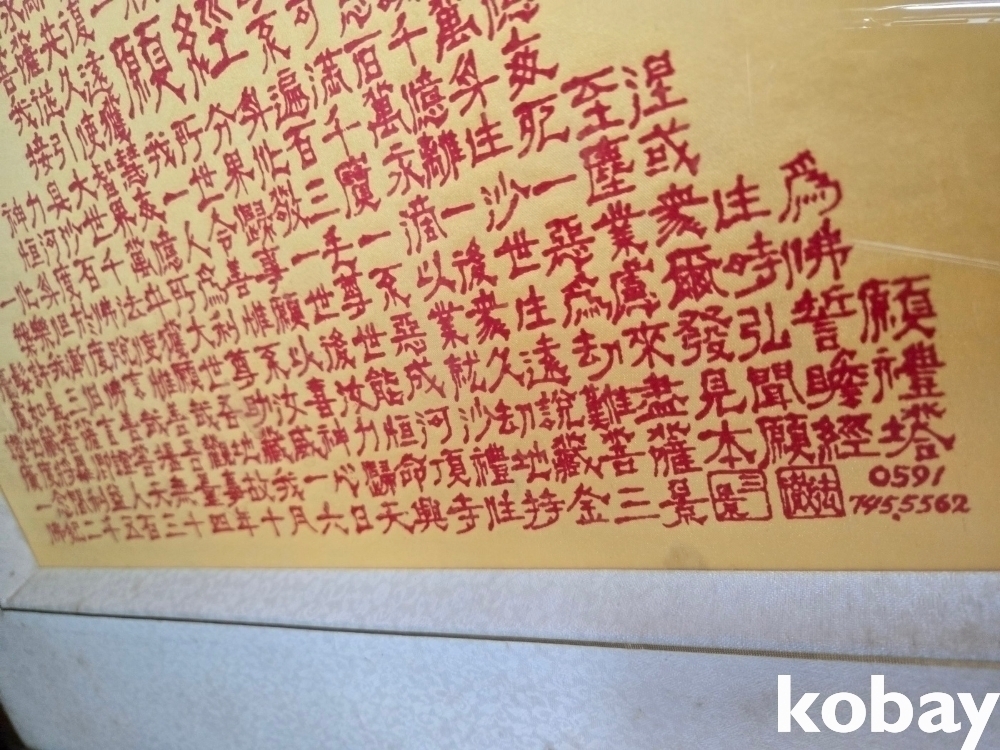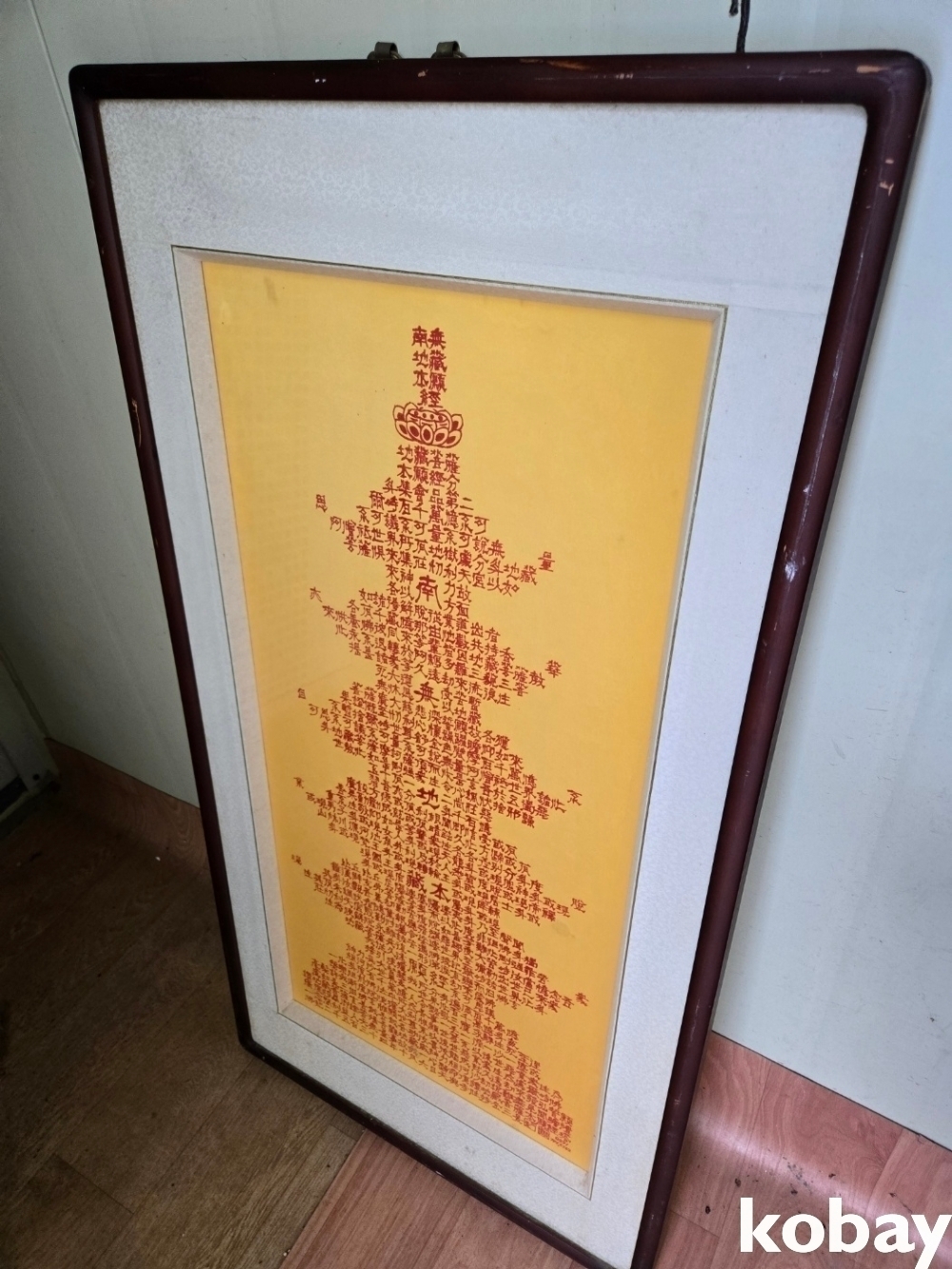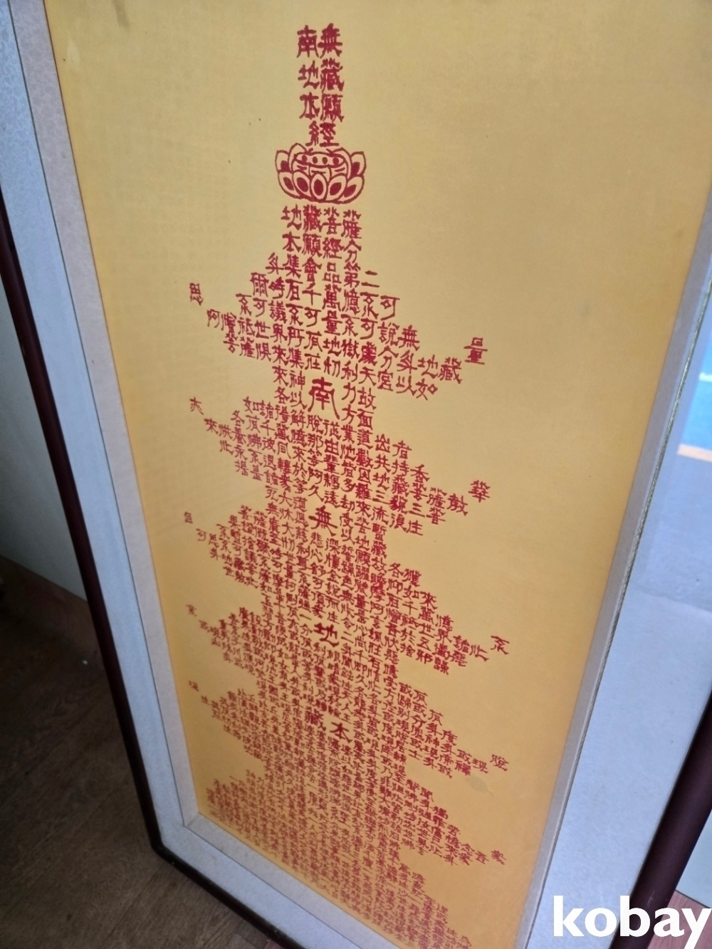 불경 문구를 탑 모양으로 쓴 액자 입니다.
