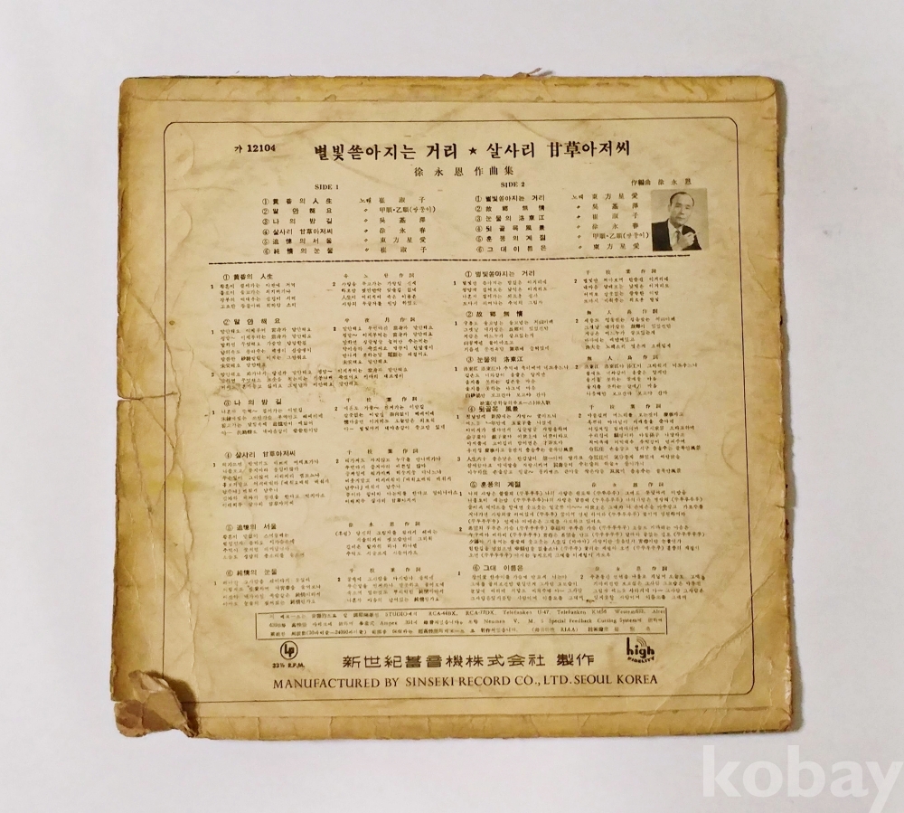 | 자켓상태 | P : 물에 젖거나 심한 훼손 | 음반상태 | EX : 재생에 영향 없는 가벼운 기스 존재 | 발매정보 | 알수없음 | 가사지여부 | 무 |
