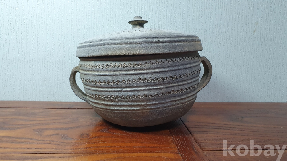 몸체에는 두개의 손잡이와 세개의 선을 두르고 파형의