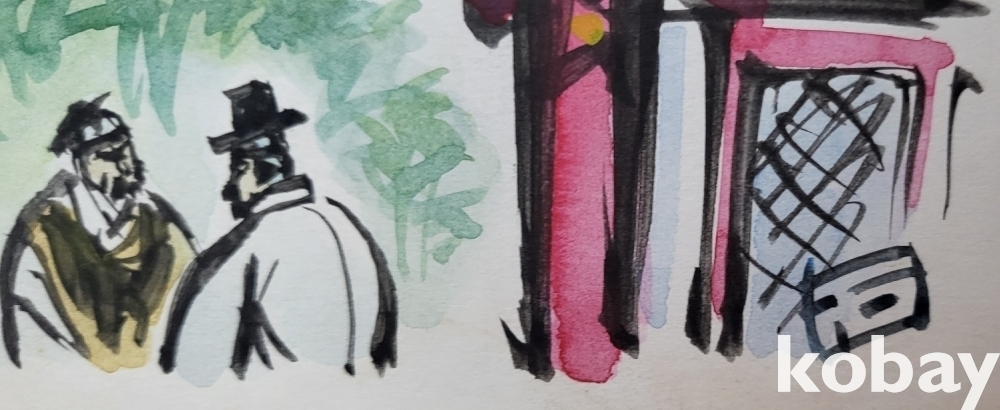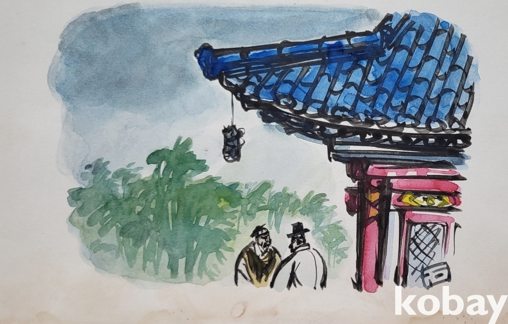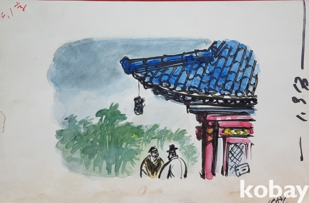 ### 스케치 북에 그린 것으로 어떤 삽화 뒷면에는 1984ㅡ5년 8월 ㅡ10월등의 날인(日印)이 있읍니다,