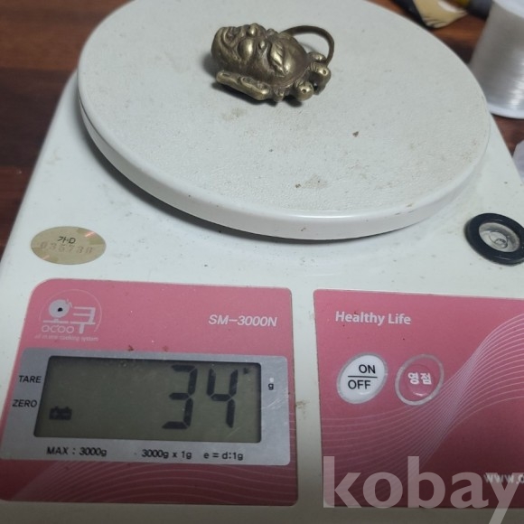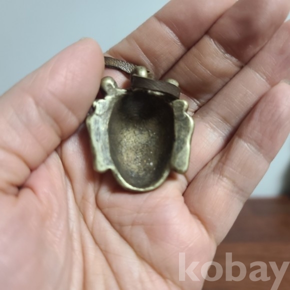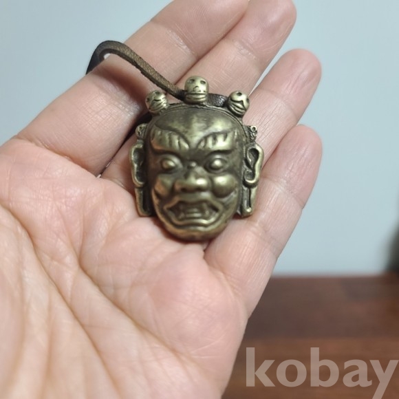 동재질로된 티벳 양식의 작품입니다 가죽 끈이 달려 있습니다.