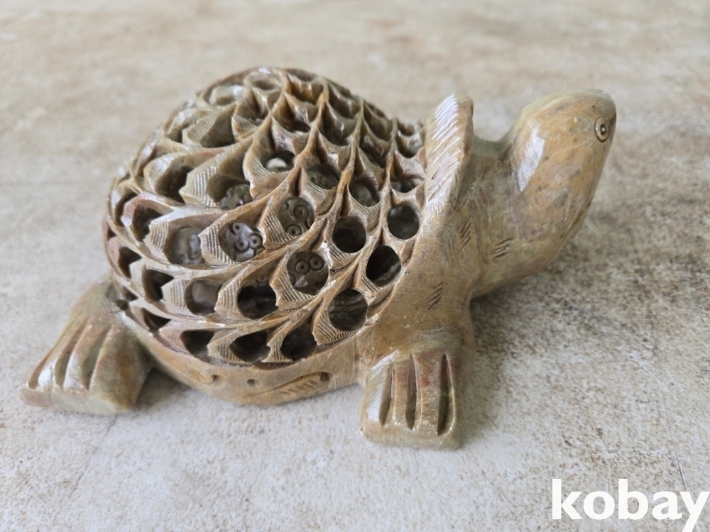 거북 몸통 투각 속으로 작은 거북이가 있습니다.