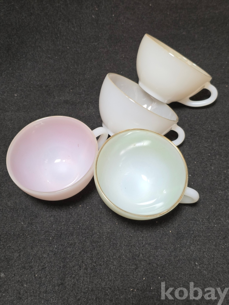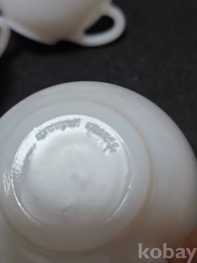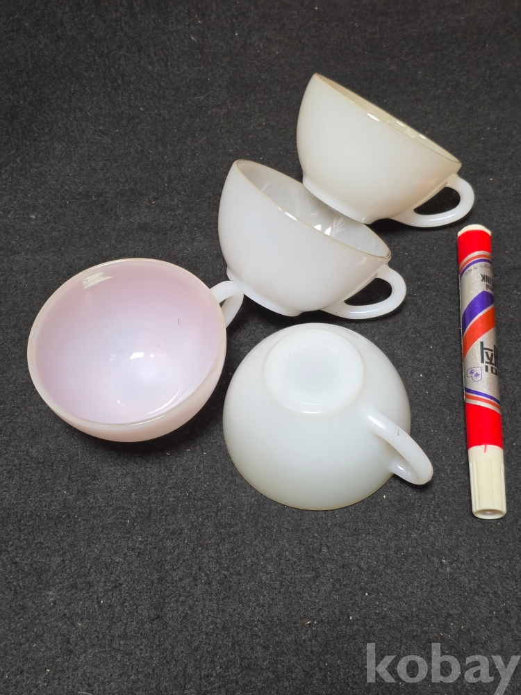 (((빈티지커피잔))) 오래전 프랑스 아코팔 (Arcopal) 빈티지 밀크 커피잔 4종세월을 지닌 물품입니다