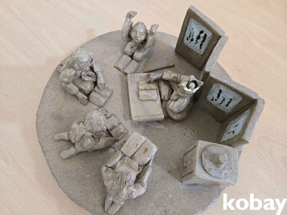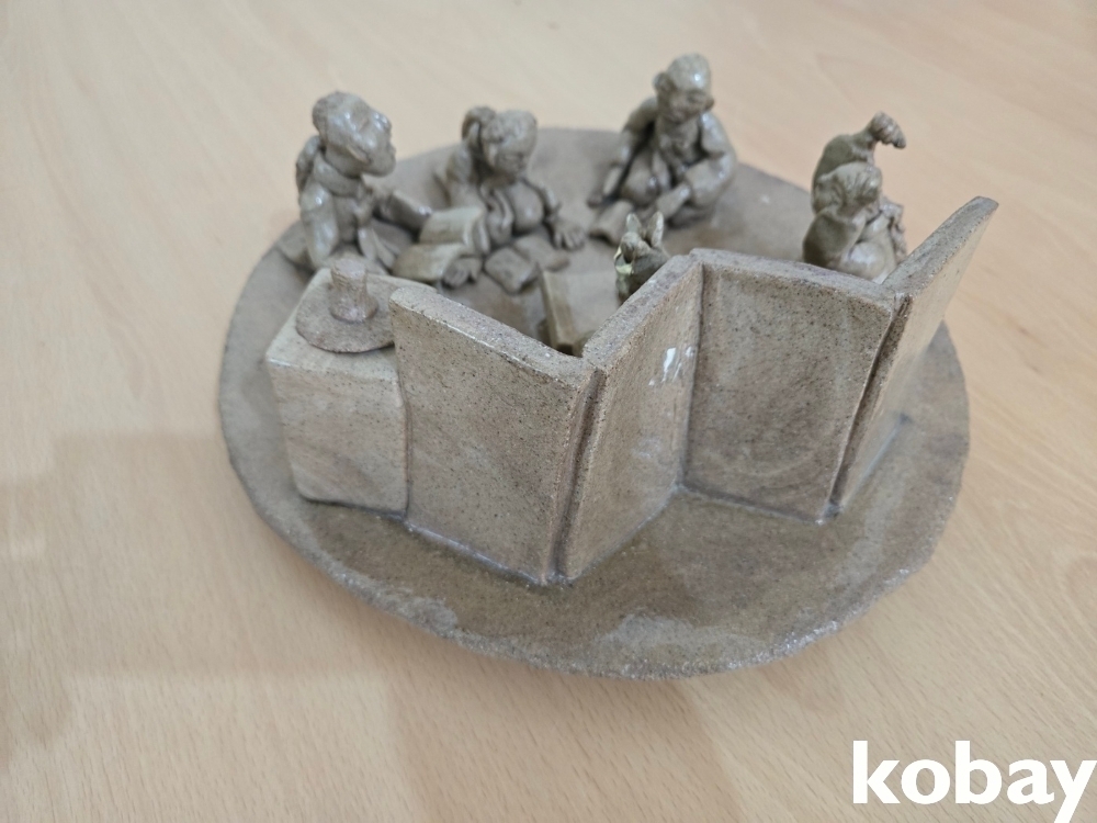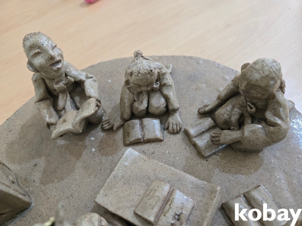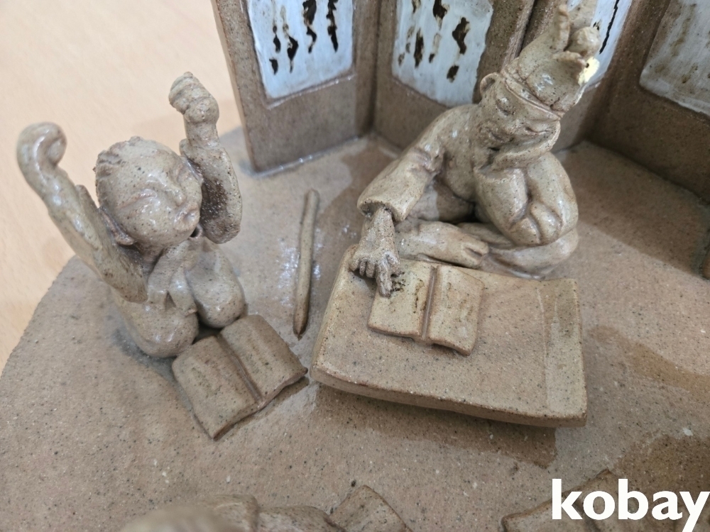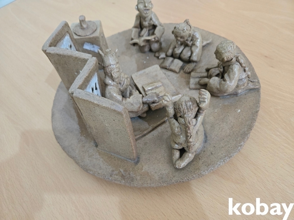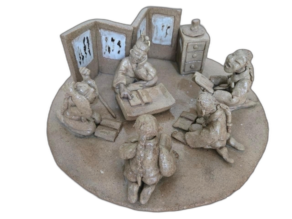 서당에서 공부하는 모습을 표현한 도자기 입니다.