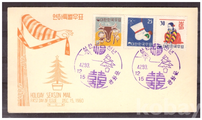 (초일봉피) 1960.12.15 연하특별우표 FDC (광화문 4293.12.15)