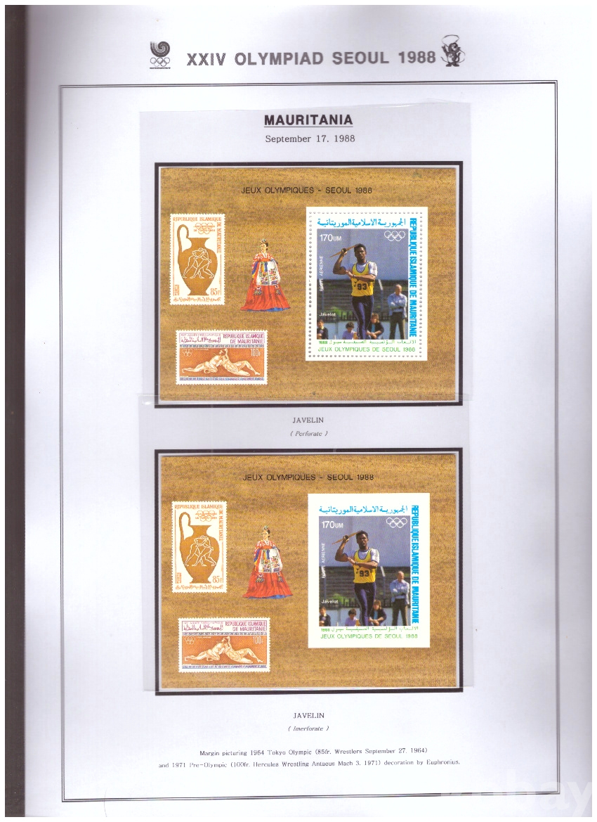 (서울올림픽) Mauritania(모리타니) 1988.9.17 창던지기 천공 s/s +무공 s/s MNH