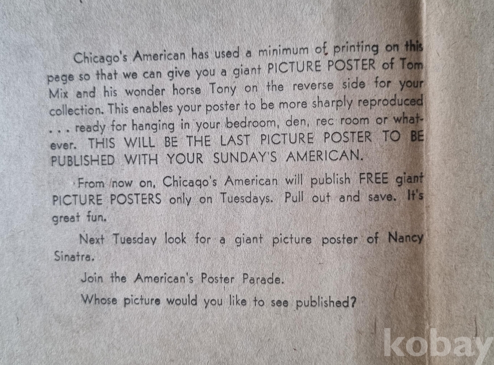 상태: 오리지널 지류 특유의 빈티지한 느낌이 잘 살아 있으며, 뒷면에는 다음 호 예고(낸시 시나트라)가 포함되어 있습니다.