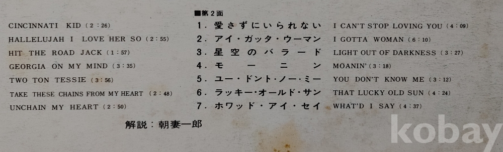 Ray Charles 앨범입니다 / 트랙은 별도로 제공합니다 / 쟈켓 좌측이 일부 벌어져 있습니다 / 보관은 가능합니다 / Ex+