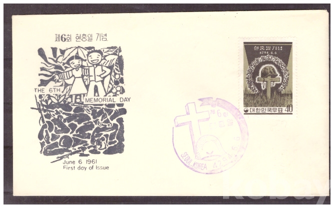 (초일봉피) 1961.6.6 현충일 기념 FDC (SEOUL,KOREA 4294.6.6)