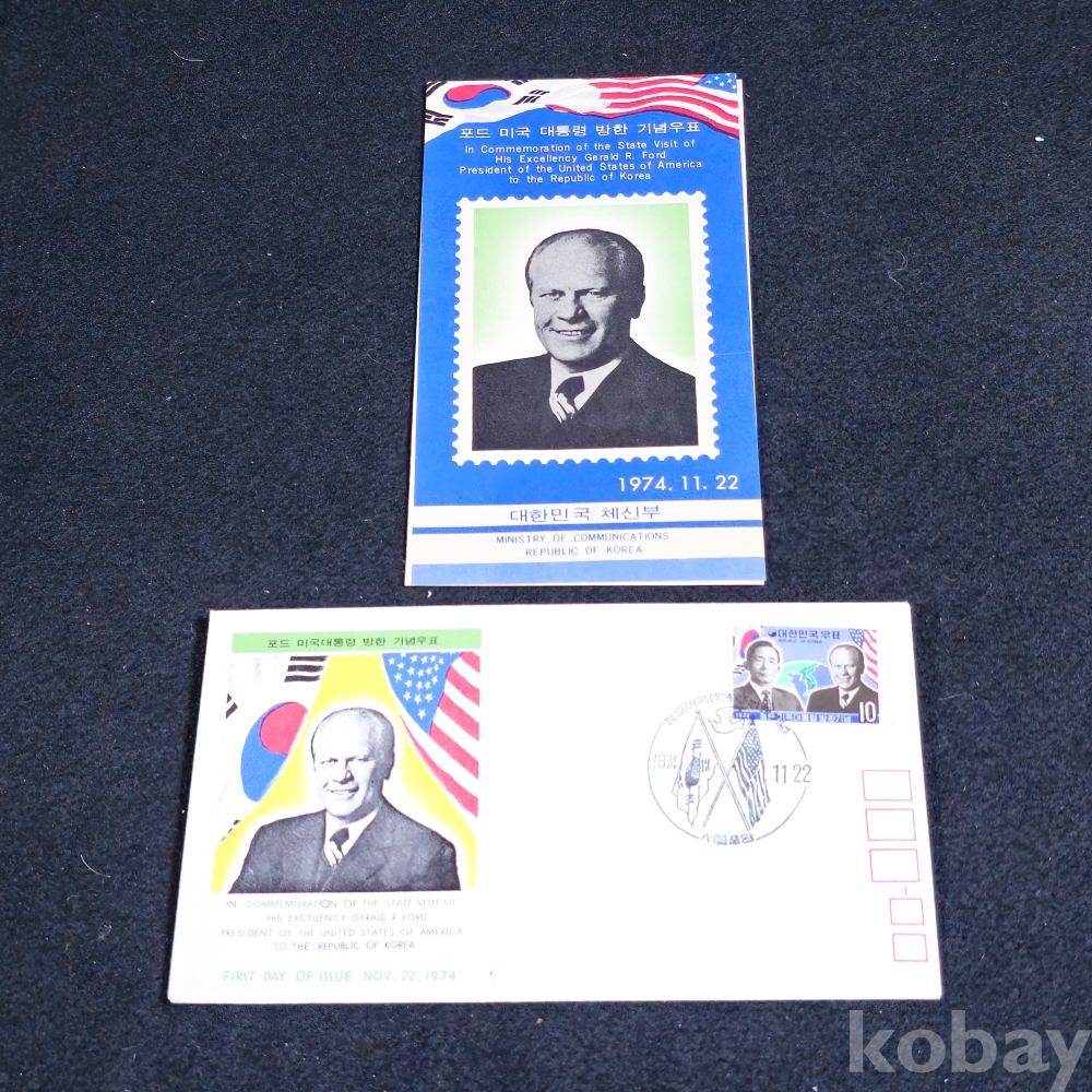 (천원경매) (((우취자료/초일봉피)) 1974년 포드미국대통령 방한기념 초일 봉피  (우표안내지포함)