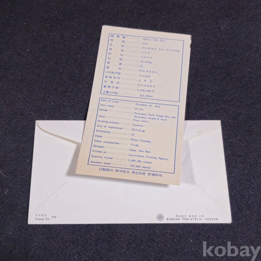 (천원경매) (((우취자료/초일봉피)) 1974년 포드미국대통령 방한기념 초일 봉피 (우표안내지포함)
