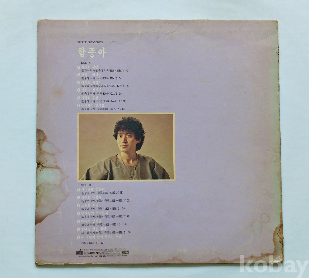 EX : 약간의 마모, 모서리 찢김 존재 음반상태