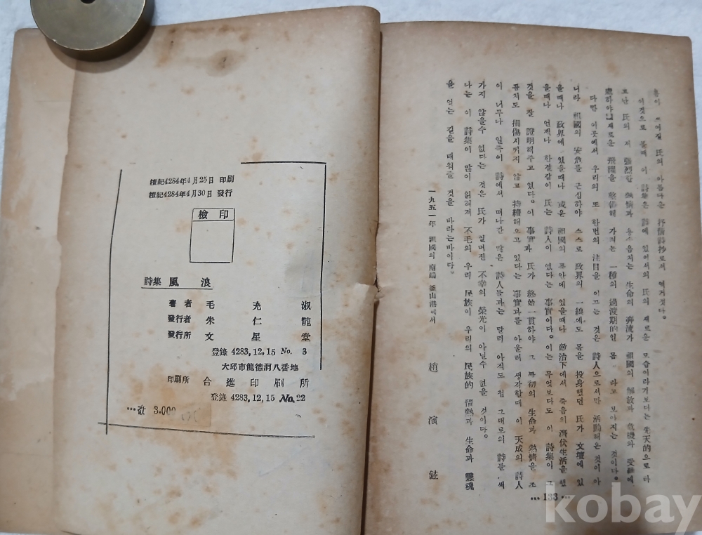 노래한 "풍랑" 초판본
