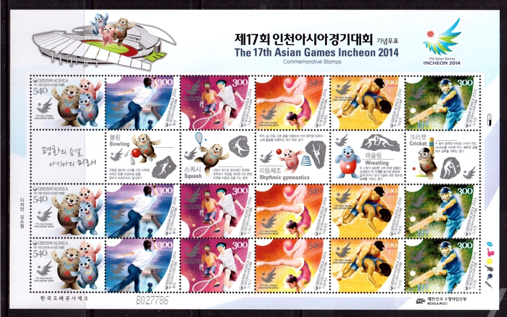 (한국전지) 2014.7.31 제17회 인천아시아경기대회 sheet of 18 MNH