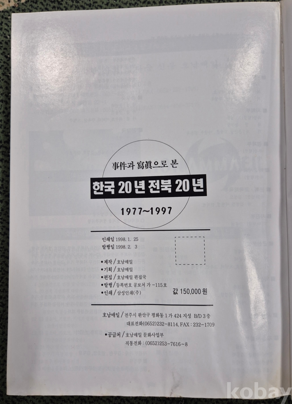 격동기의 한국과 호남의 변화상을 알 수 있는 "한국 20년 호남 20년(호남매일)" 구하기 힘든 귀한 책이오니