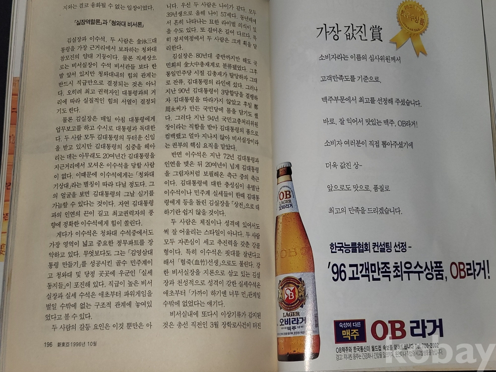 빈티지 세월 감이 느껴지는 1996년 신동아 잡지입니다.