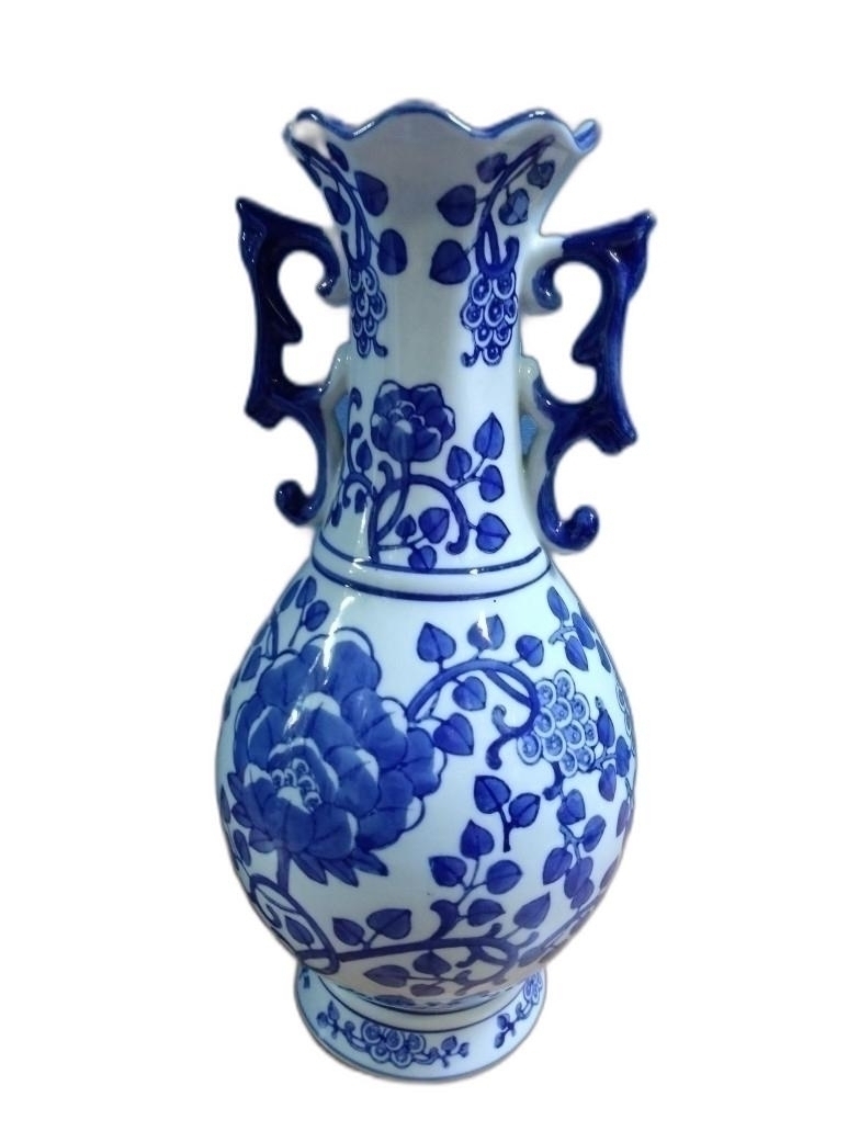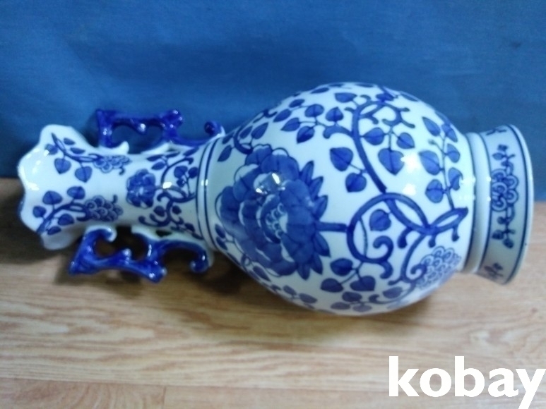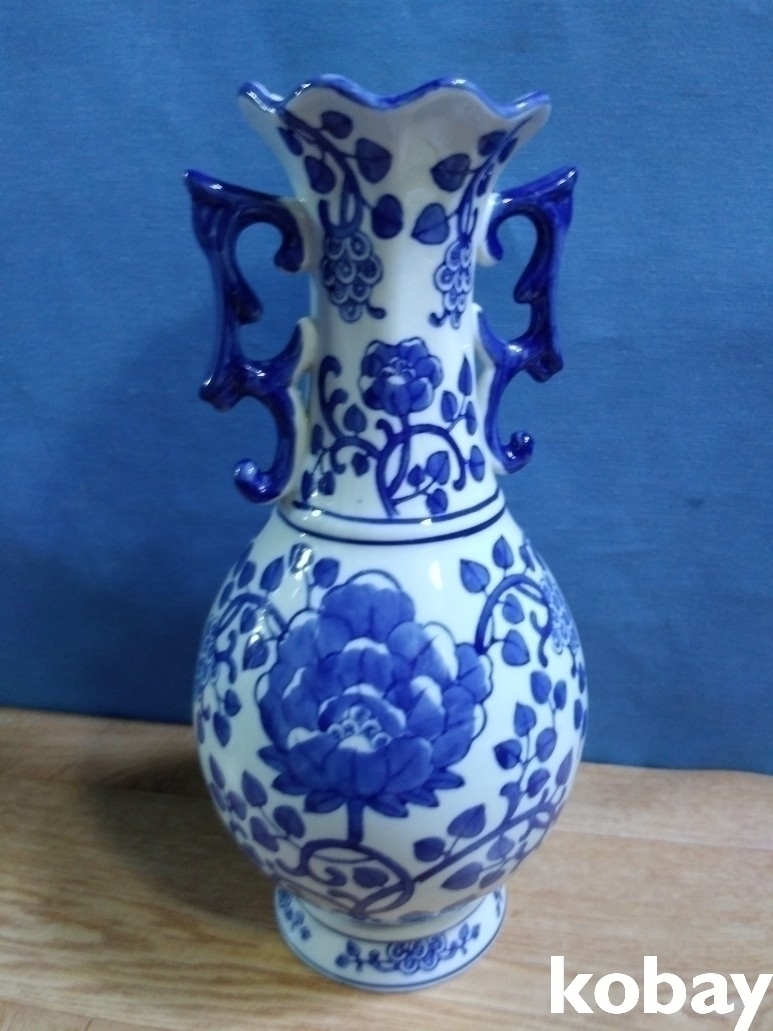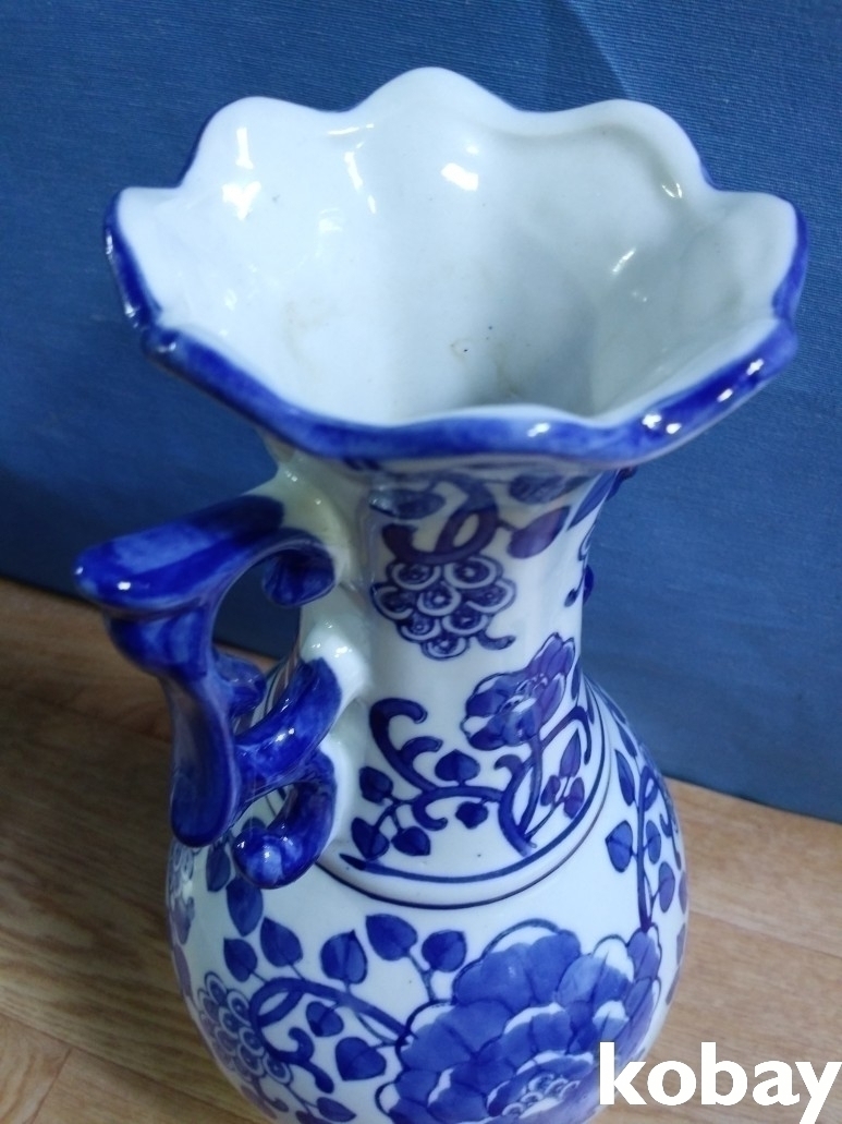 꽃 모양의 입에 양귀가 달린 도자기 입니다.