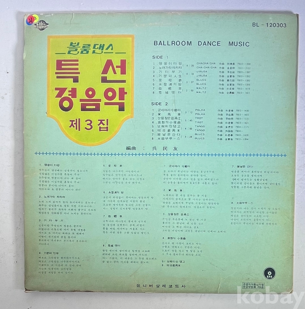 볼룸댄스 특선 경음악 제3집 LP판입니다.