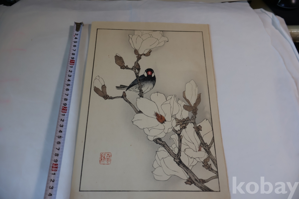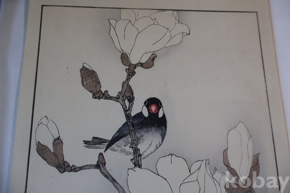 1930 대 목판화 새 임니다 아름다운 디자인 구도 섬세 함을 가진 명화 임니다 화가의 낙관이 보임니다