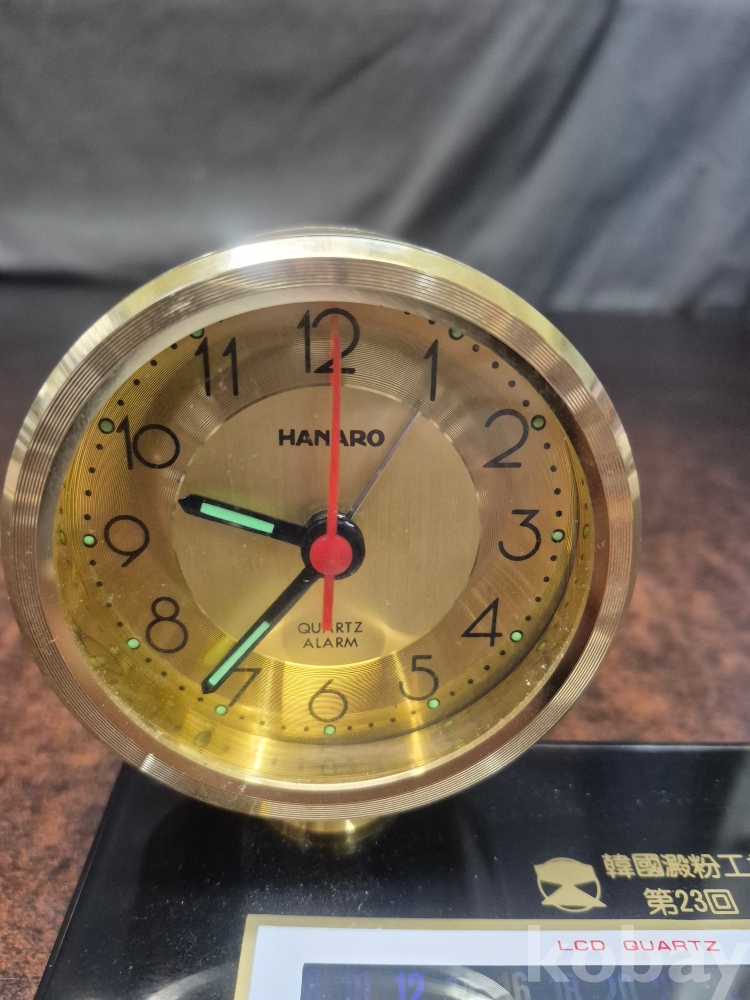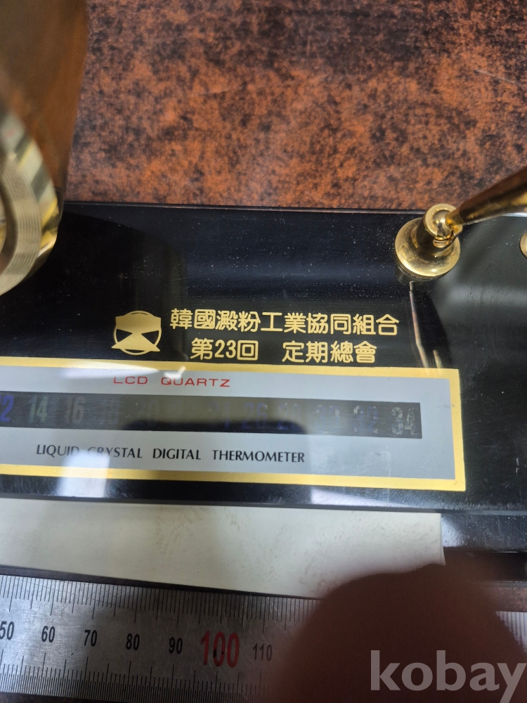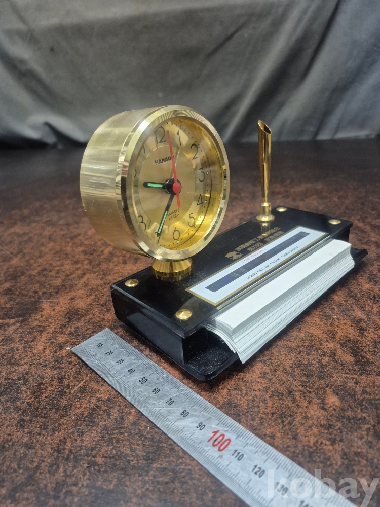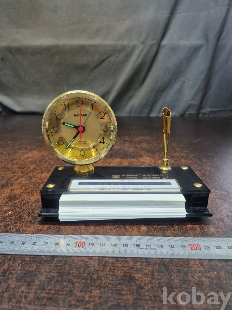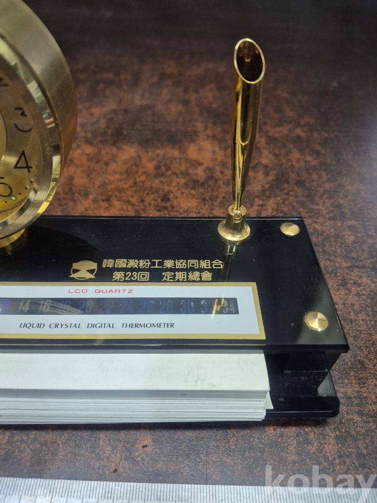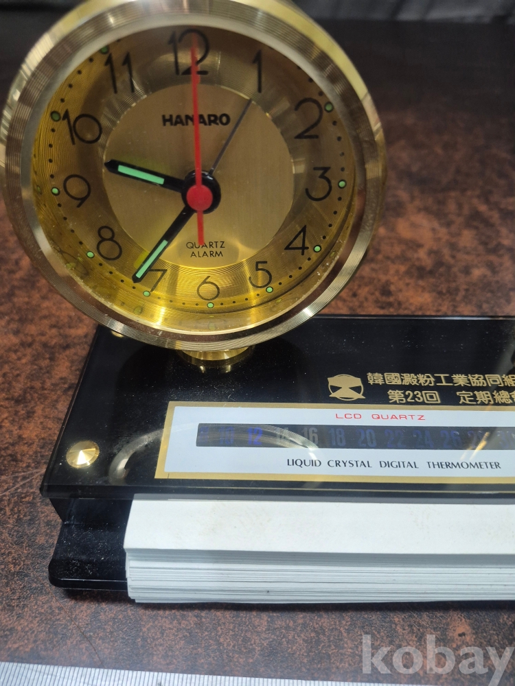 1980년대 한국 전분 공업협동조합 제 23회 정기 총회 기념 탁상시계겸 볼펜 꽂이와 메모지함 세트 17*.5*8*13