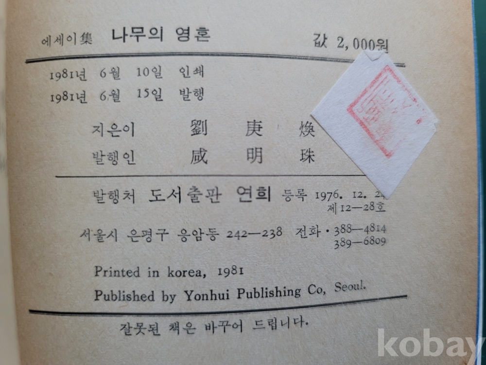 도서출판 '연희'에서 발행. 294쪽. 12.5X20.7X2.0cm