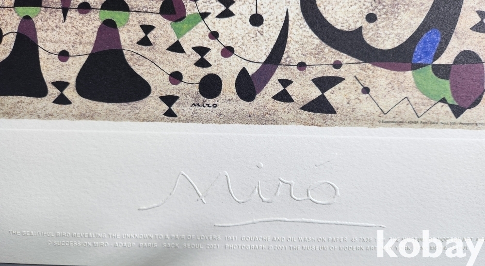 스폐인의 유명 서양화가 로안미로 사인이 보이는 압인 판화입니다,