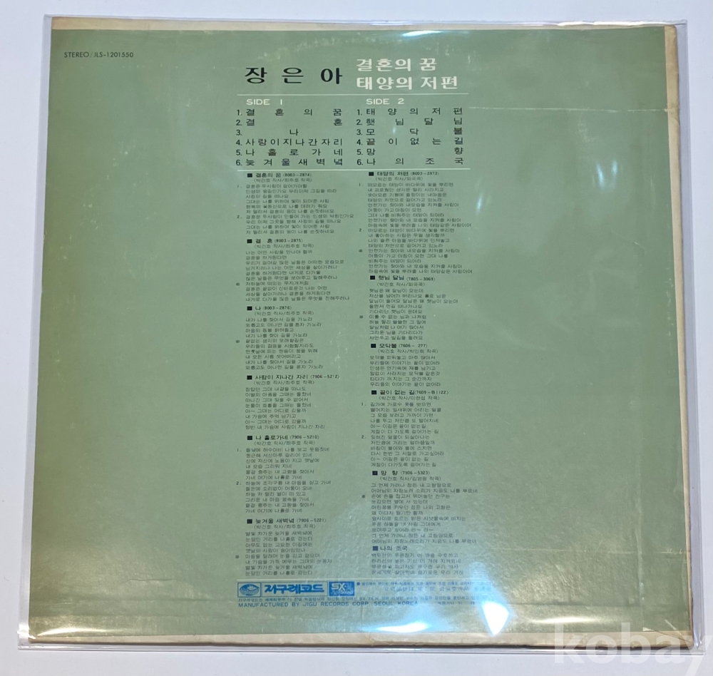 | 자켓상태 | EX : 약간의 마모, 모서리 찢김 존재 | 음반상태 | EX : 재생에 영향 없는 가벼운 기스 존재 | 발매정보 | 알수없음 | 가사지여부 | 무 |