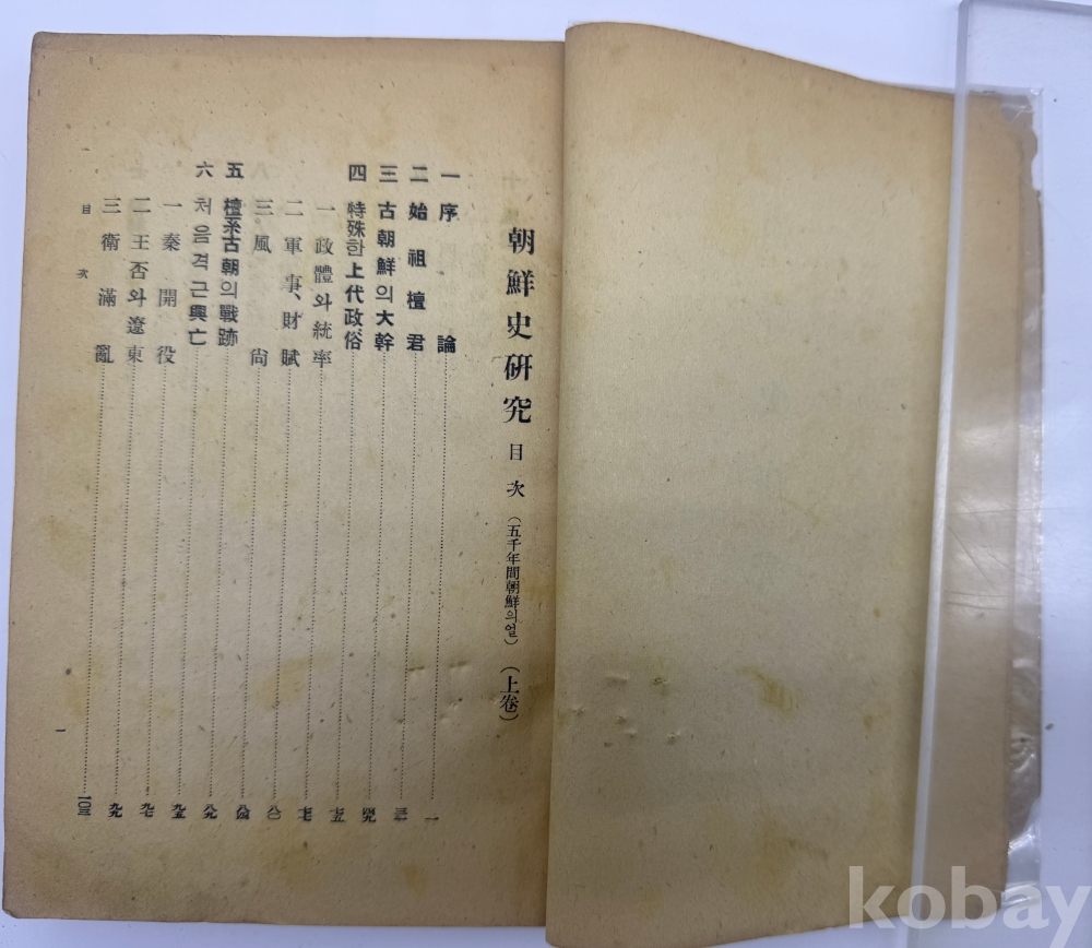 물 품 명 | <좋-았書! 2탄> [10] 1946~47년 발행, 정인보 저술, 우리나라 고대사를 특정한 주제별로 분류해 통사(通史) 형식으로 기술한 [조선사연구(朝鮮史硏究)] 상, 하 2책 일괄 | |||||