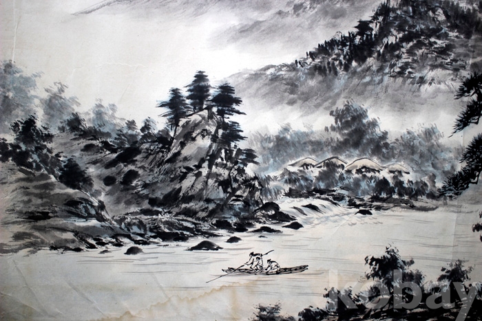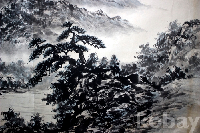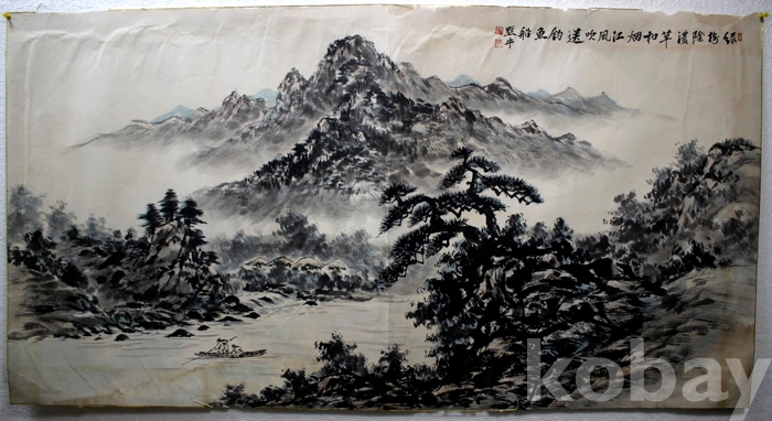 미술대전 입선작가인 默井(묵정) 윤성중의 하경산수 전지 - 운해가 가득한 강가의 여름풍경