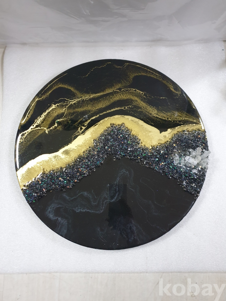 {천원경매}3-1700+5 에폭식 레진아트 인테리어 검정골드원(40*40, 묶음배송불가)