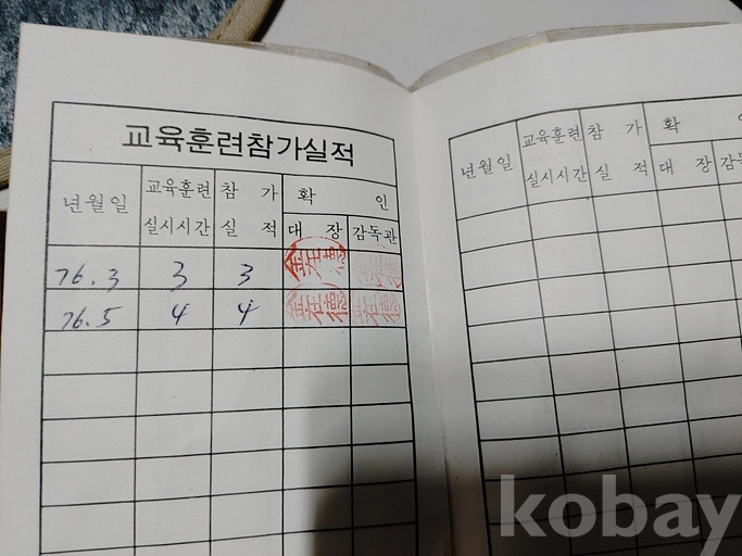 완장 및 수첩의 경우 훈련참가직인도 찍혀 있습니다.