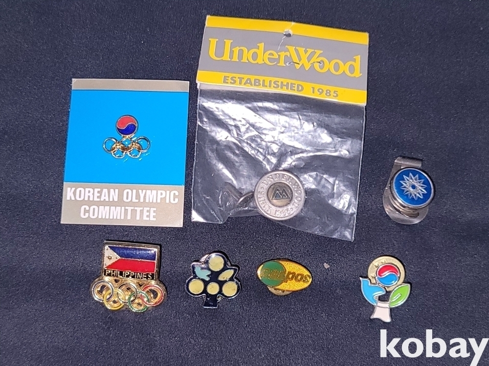 빈티지 희귀한 1988년 서울올림픽 관련 뱃지 2종과 언더우드 뱃지 등 7종 일괄입니다.