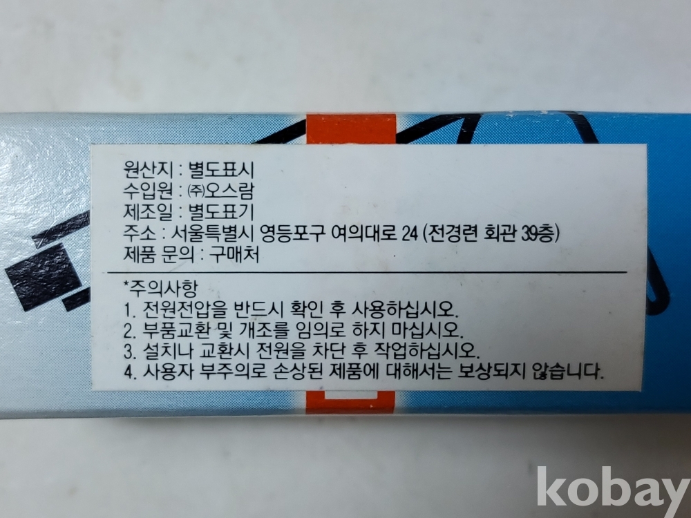 *독일산 램프: 수입원의 스티커(수입원(주)오스람)가 붙어 있고 '24V 150W'기재에 겉봉 상단에 HALOGEN DISPLAY/OPTIC LAMP라 명기되어 있으며 투명한 본체에 하단에는 두개의 침봉이 붙어있는 나름의 독특한 자태입니다.